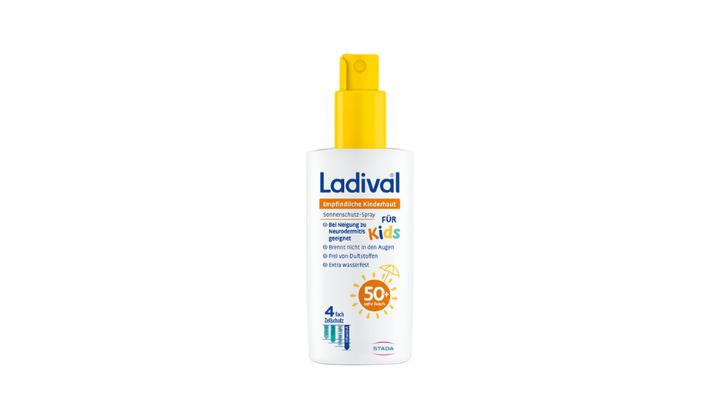Passender Sonnenschutz, wie die Ladival® Sonnenschutz Kinder-Serie mit LSF 50+ hilft, Sonnenbrände und das Risiko für Spätschäden wie frühzeitige Hautalterung oder sonnenbedingte Hautkrankheiten wie Hautkrebs zu reduzieren.3 Trotzdem sollte intensive Sonne gemieden werden und die Haut von Kindern und Babys durch Aufenthalt im Schatten, leichte, weite Kleidung und Kopfbedeckung mit Ohren- und Nackenschutz zusätzlich geschützt werden. Unbedeckte Hautstellen sollten regelmäßig mit Sonnenschutzmitteln eingecremt werden.